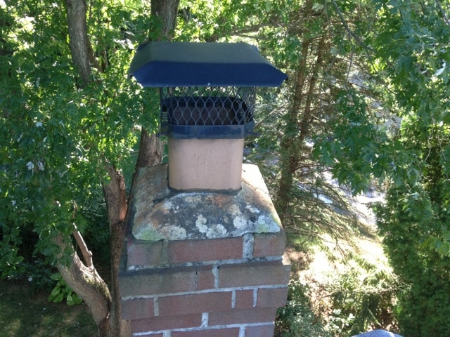 The top of a chimney is called a crown or a ” wash” It is the most important part of the chimney when considering exterior maintenance because it is a collection point for water. If it does not have good integrity (ie. cracks, missing pieces) water will be channeled to areas where the masonry and flue liner will be vulnerable to the devastating effects of water entry and eventually freeze-thaw action. The freeze-thaw cycle does a lot of damage as water seeps into cracks and crevices and then sudden freezing temperatures (like overnight) cause that water to expand as it freezes. That expansion can push mortar right out of joints or spread cracks apart even further.